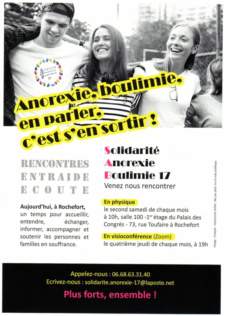 Notre association est ouverte aux personnes souffrant d’anorexie ou de boulimie, à leurs parents, à leurs conjoints, à leurs frères et sœurs et à leurs proches.